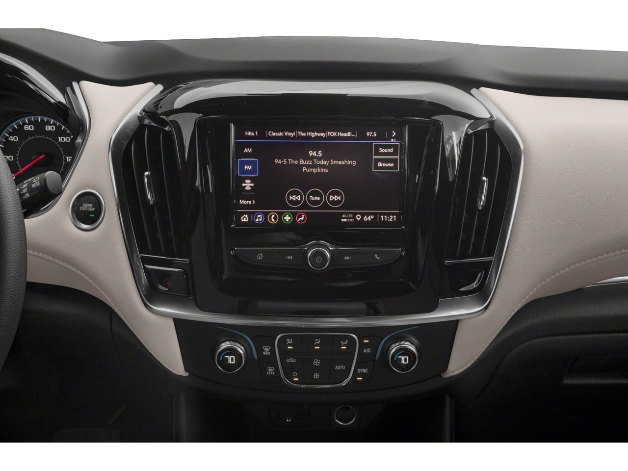 - Audio system, Chevrolet Infotainment 3 system 7" diagonal color touchscreen, AM/FM stereo. Additional features for compatible phones include: Bluetooth® audio streaming for 2 active devices, voice command pass-through to phone, Apple CarPlay and Android Auto capable (STD)